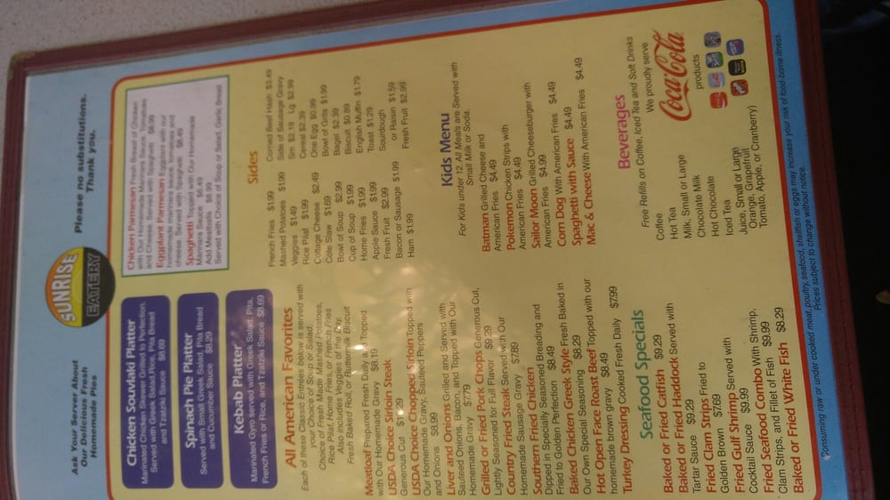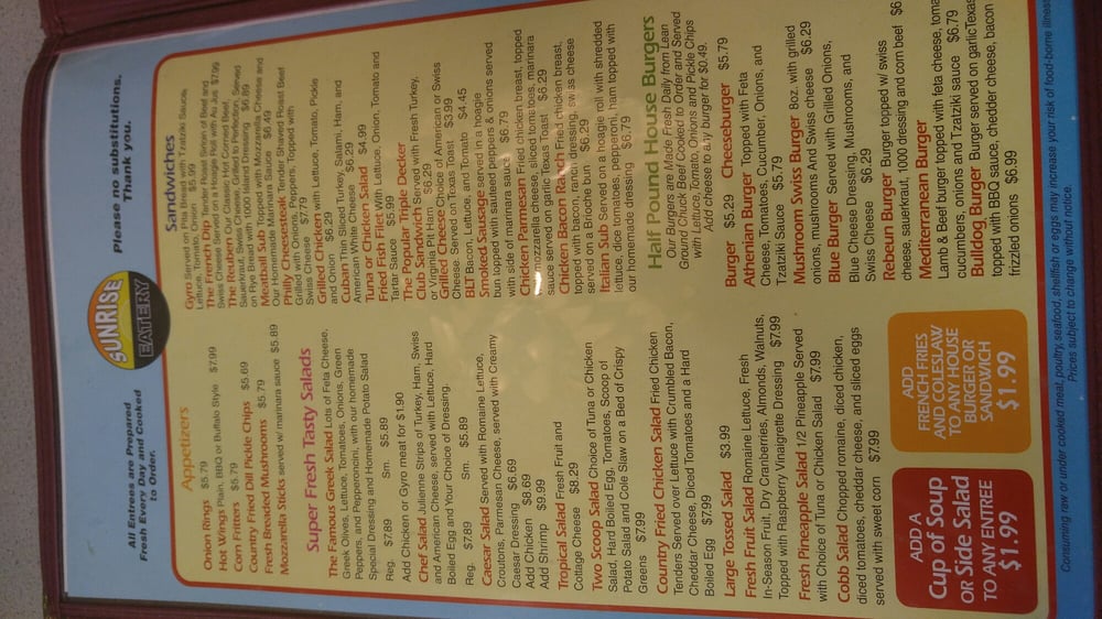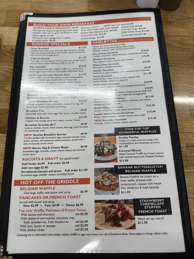 Sunrise Eatery Menu (Update 2025)