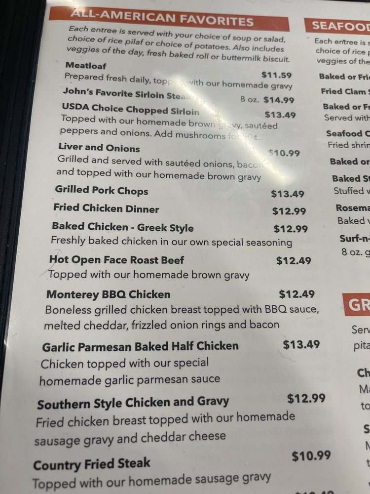Grilled and served with sauted onions, bacon, and topped with out homemade brown gravy.